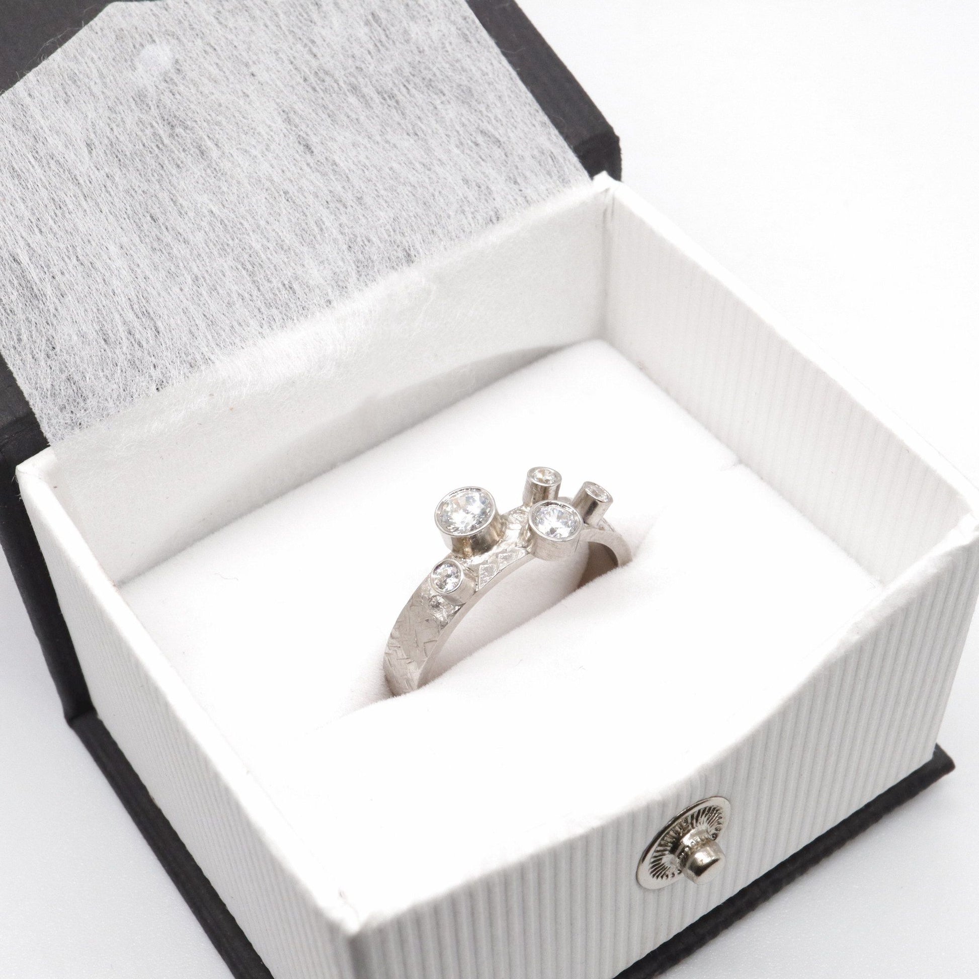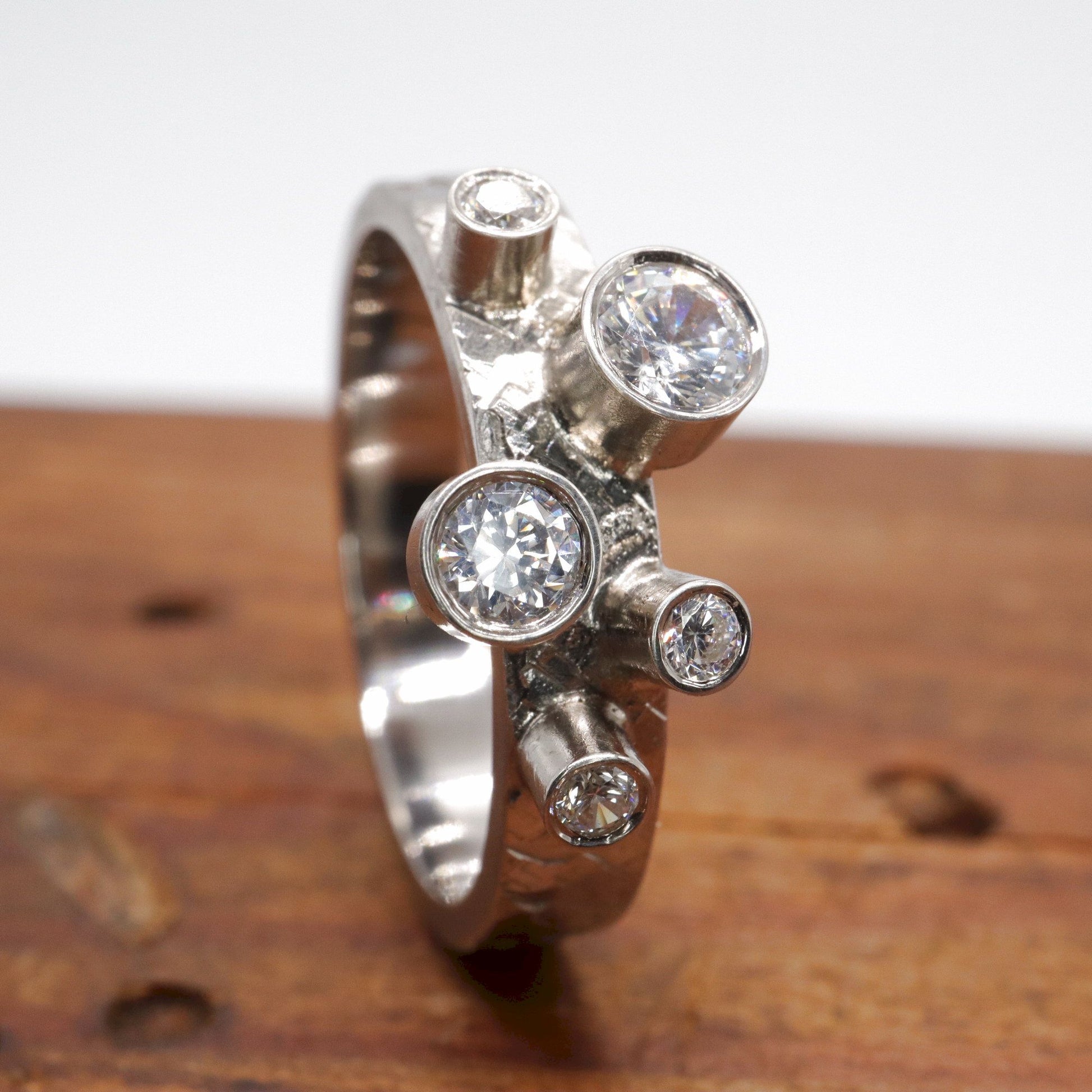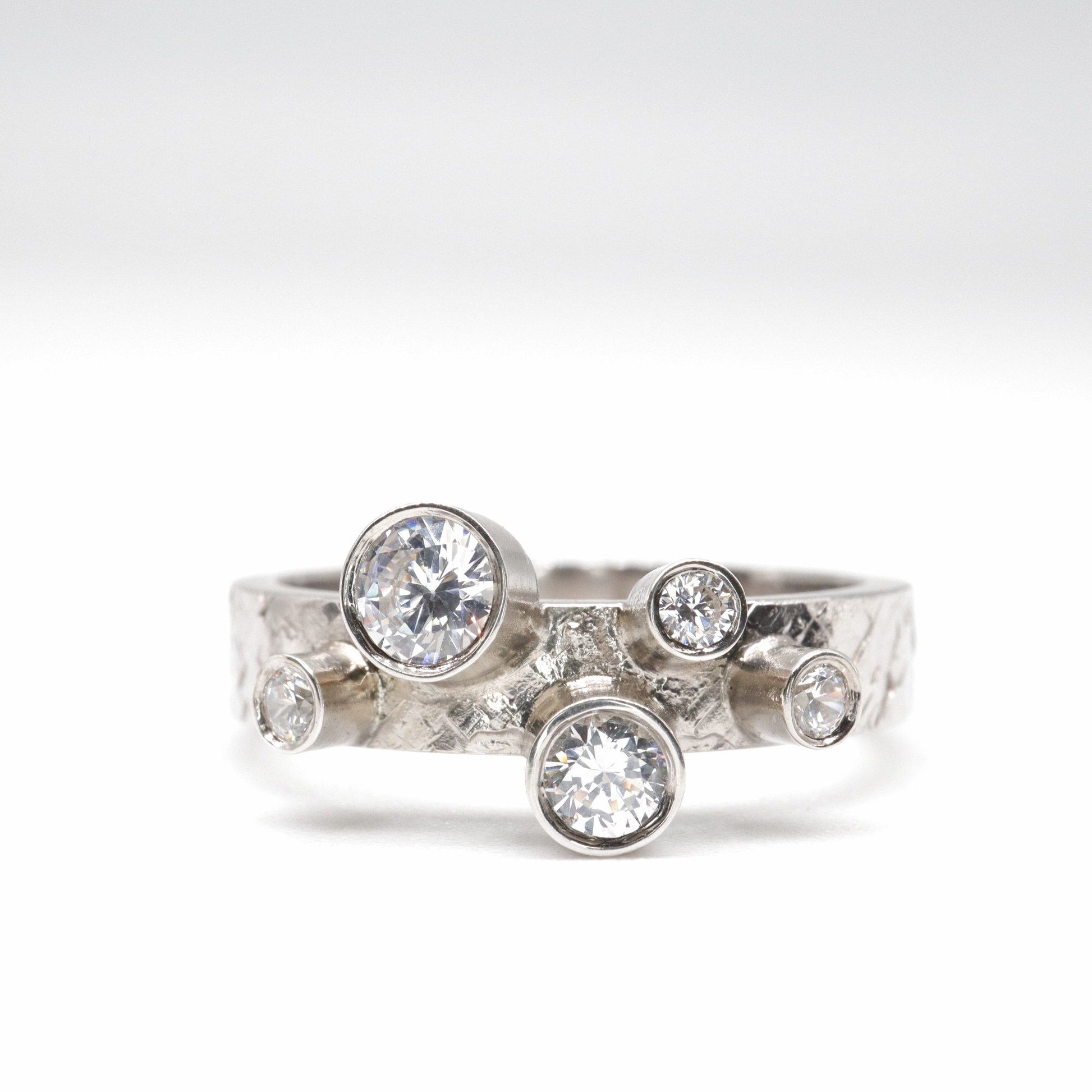 Cocktail cluster white gold diamond ring. Kendal unique design with a total weight of 0.43ct on a 4mm wide band.