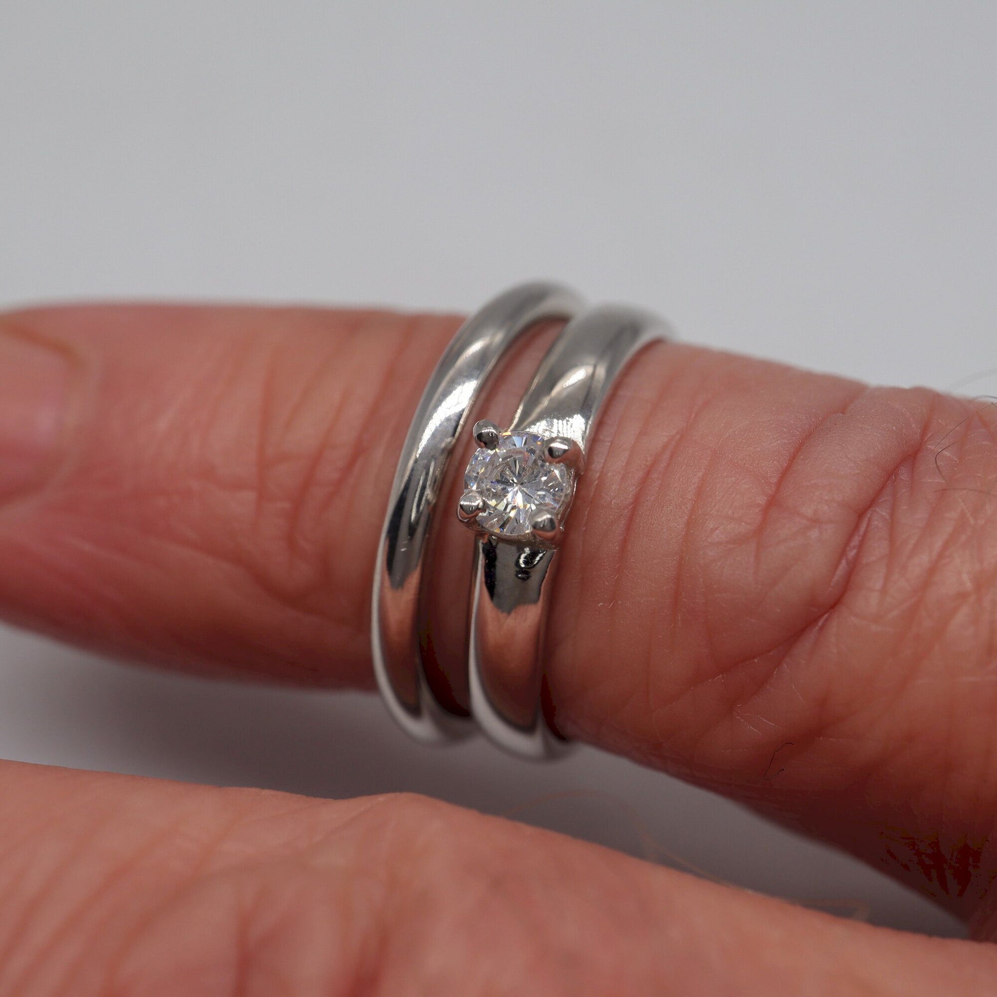 Diamond bridal set, larger white gold, Carlisle design 0.25ct and 2mm wedding band.