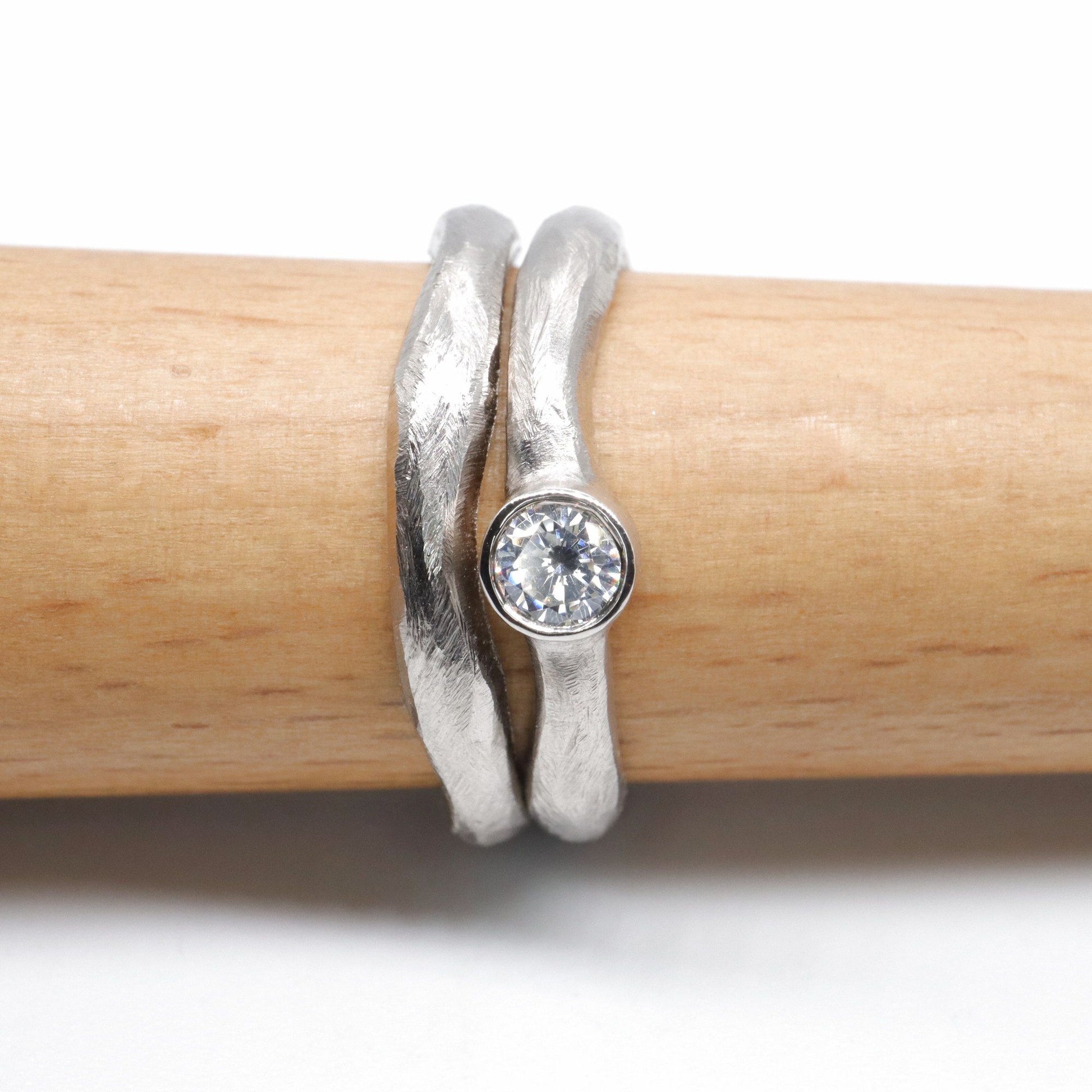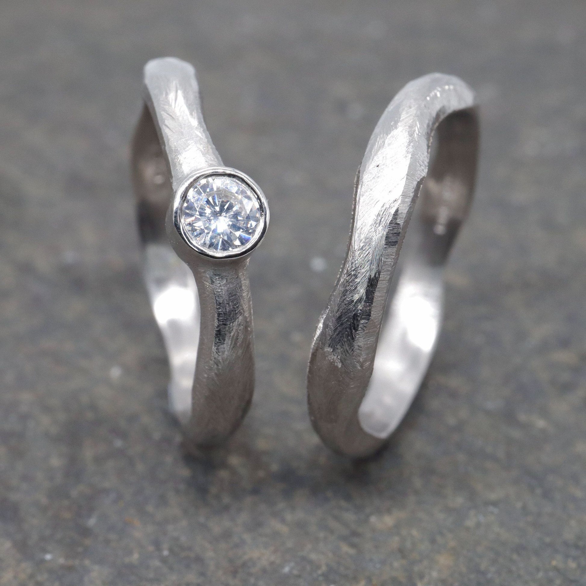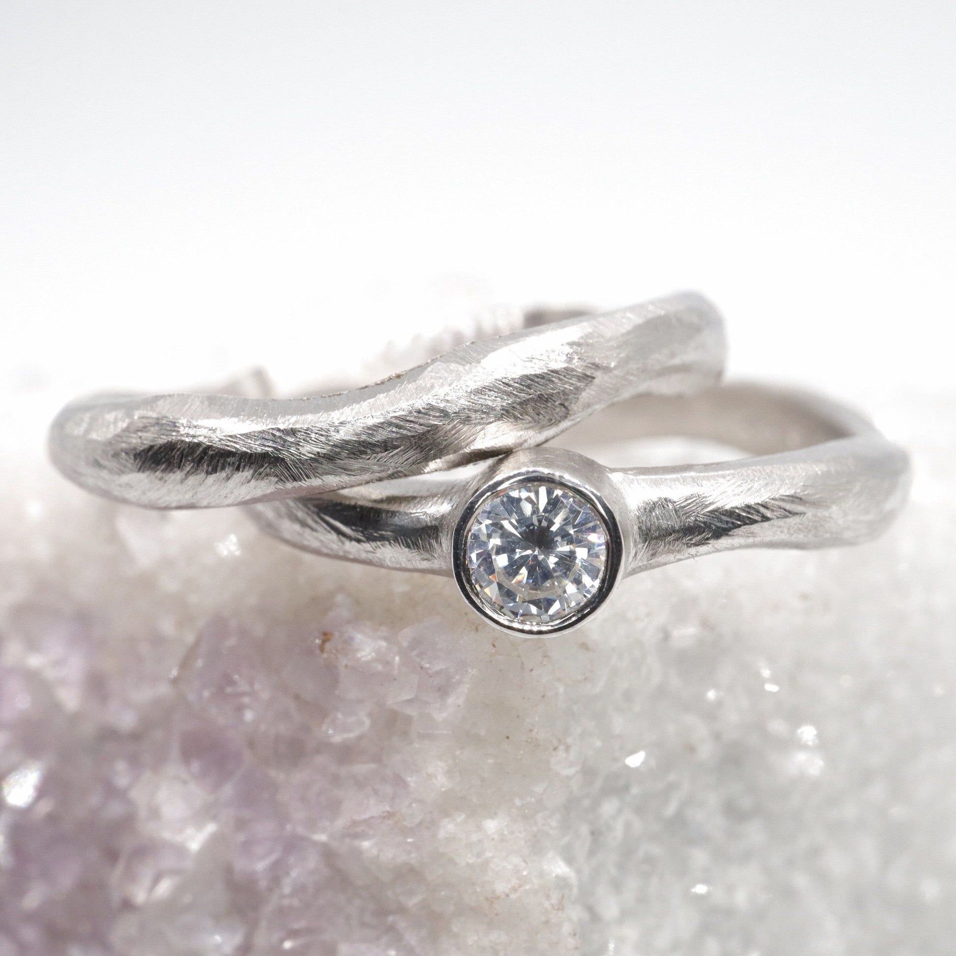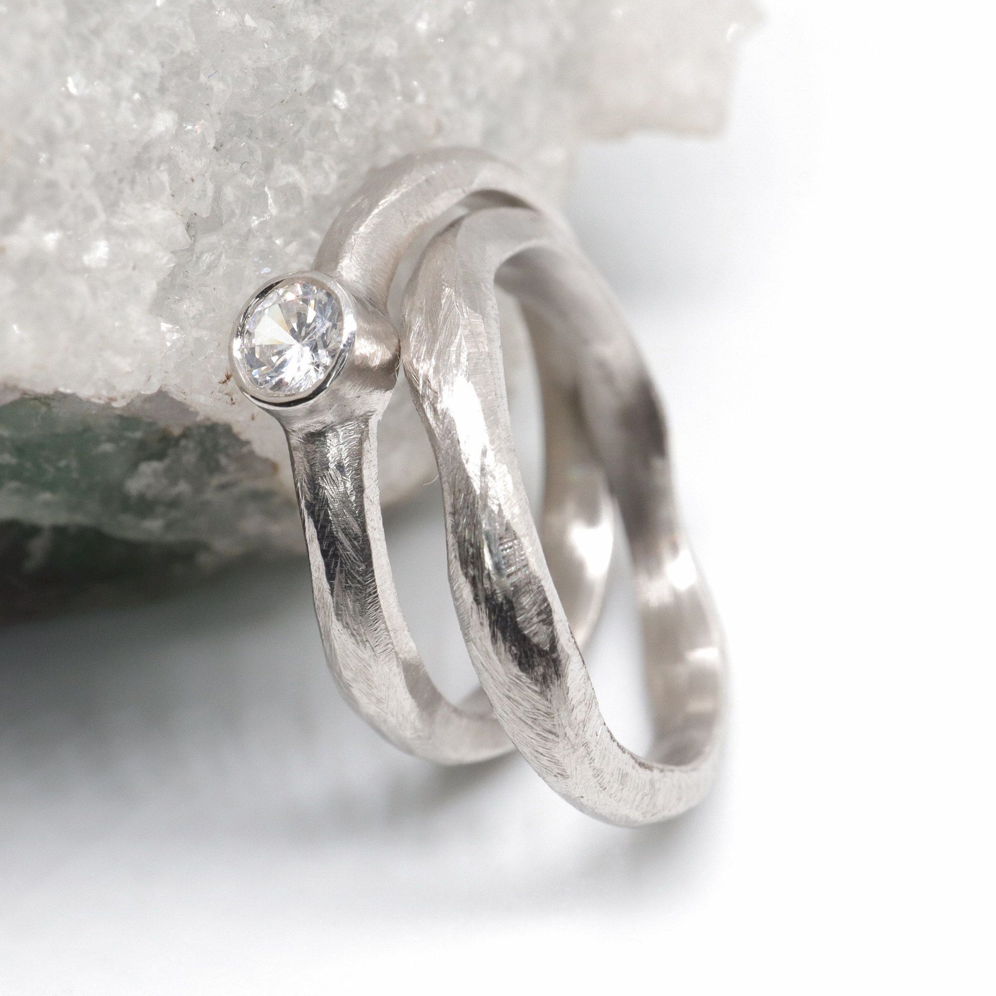 Diamond bridal set, white gold larger 3mm rings, Beach Sand design