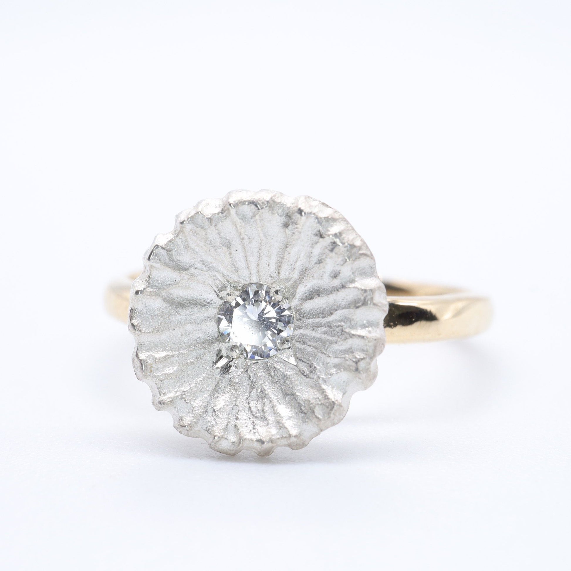 Diamond set yellow gold and silver Water Lilies solitaire ring.