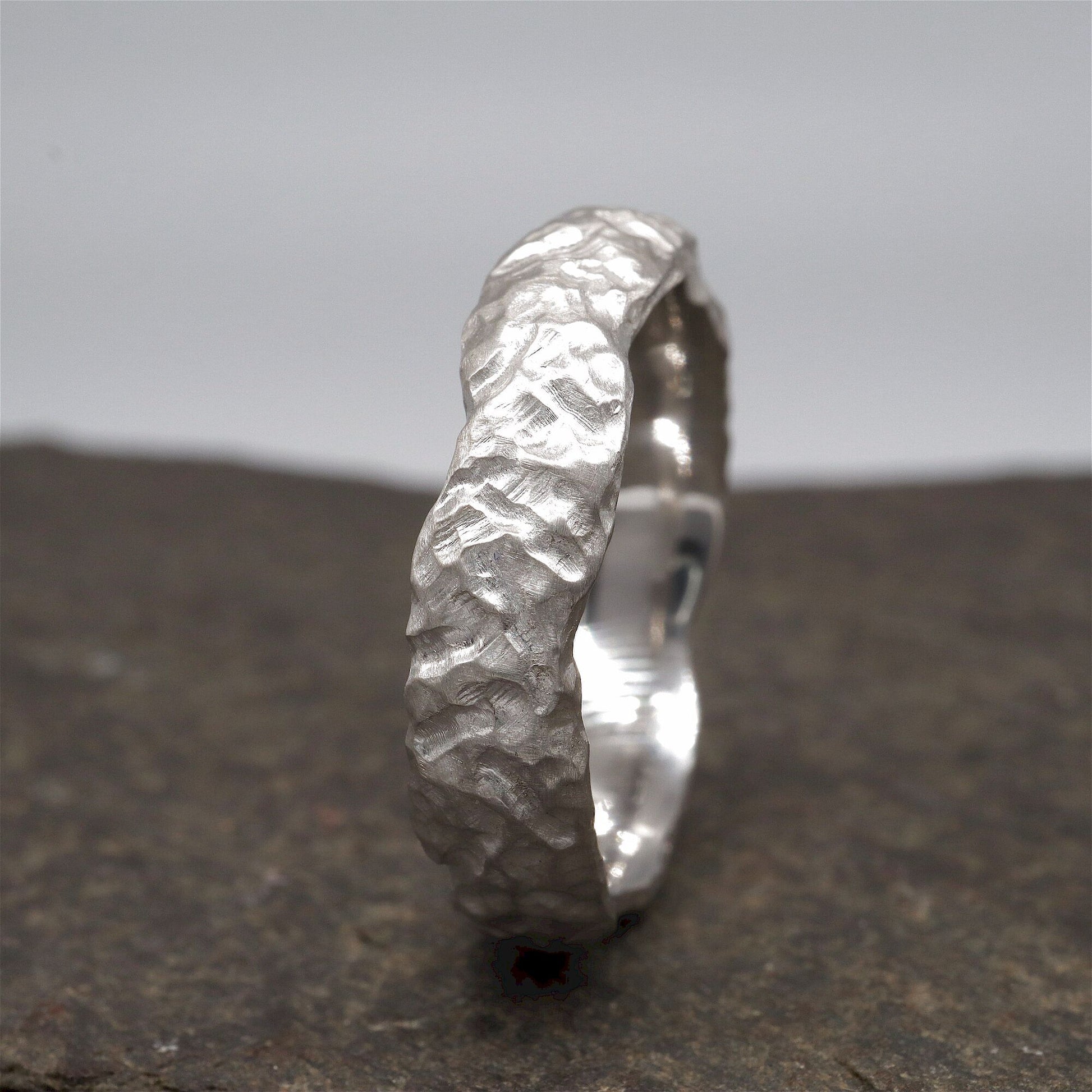 They have been finished with an original hand carved texture and polished inside. Inspiration was taken from patterns in rocks at the edge of Loweswater. One of the lakes you can walk around giving great views of the Lake District fells. The image shown is of the 6mm version.