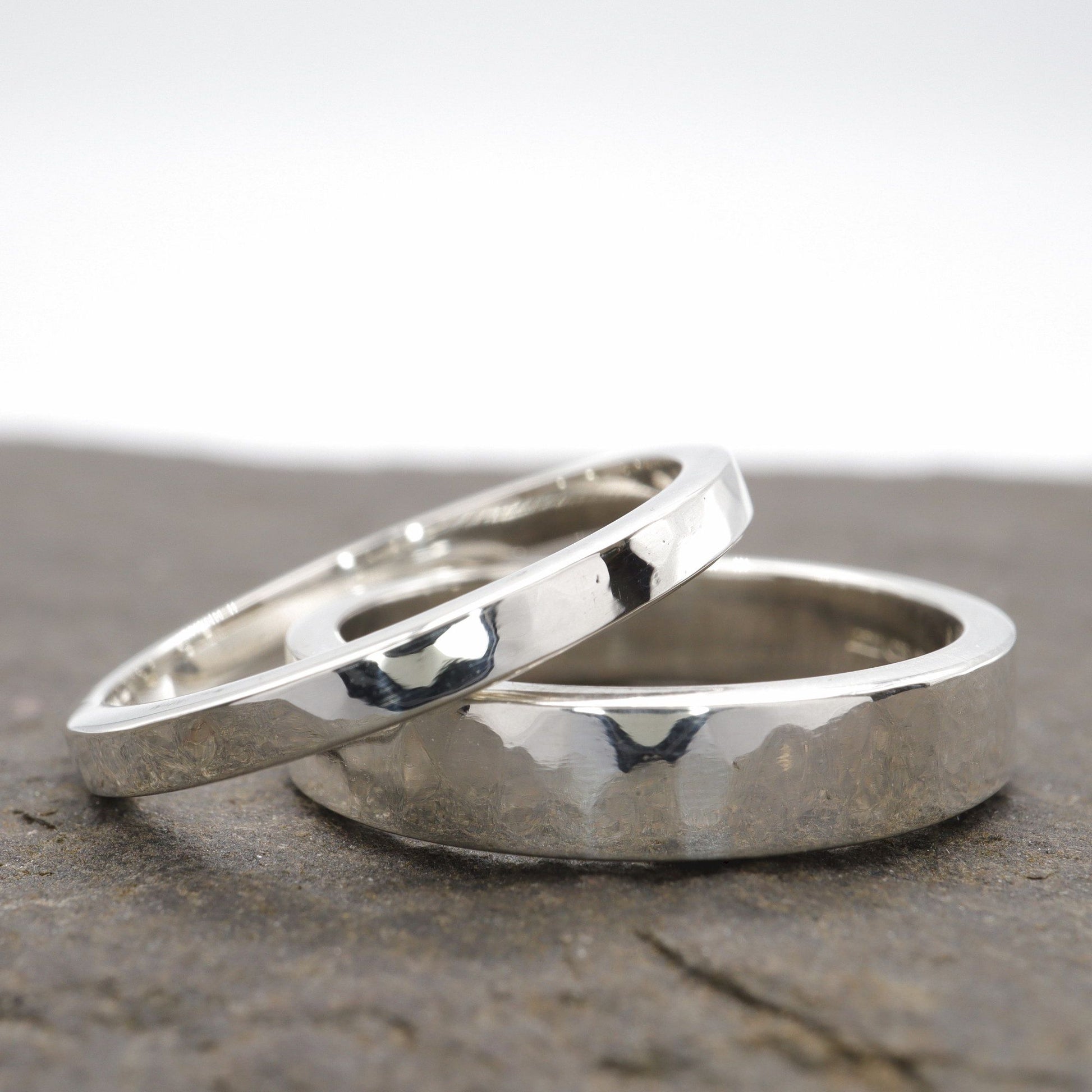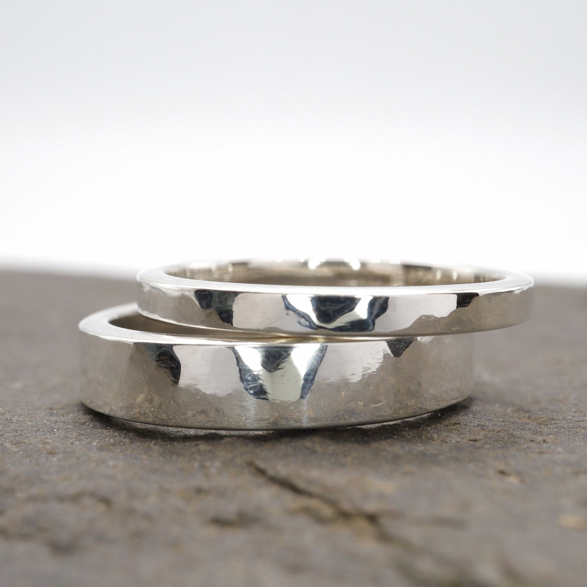 Each one is handmade with a unique individual pattern on every ring so no two are exactly alike. Both the 2mm and 4mm rings are made on a heavy flat band.