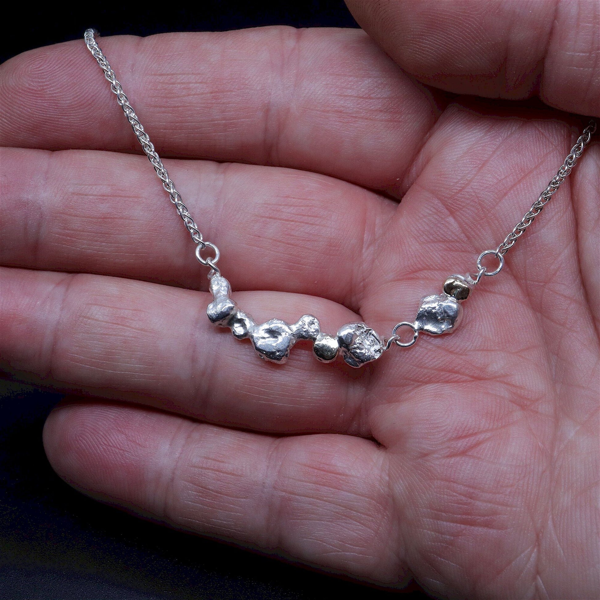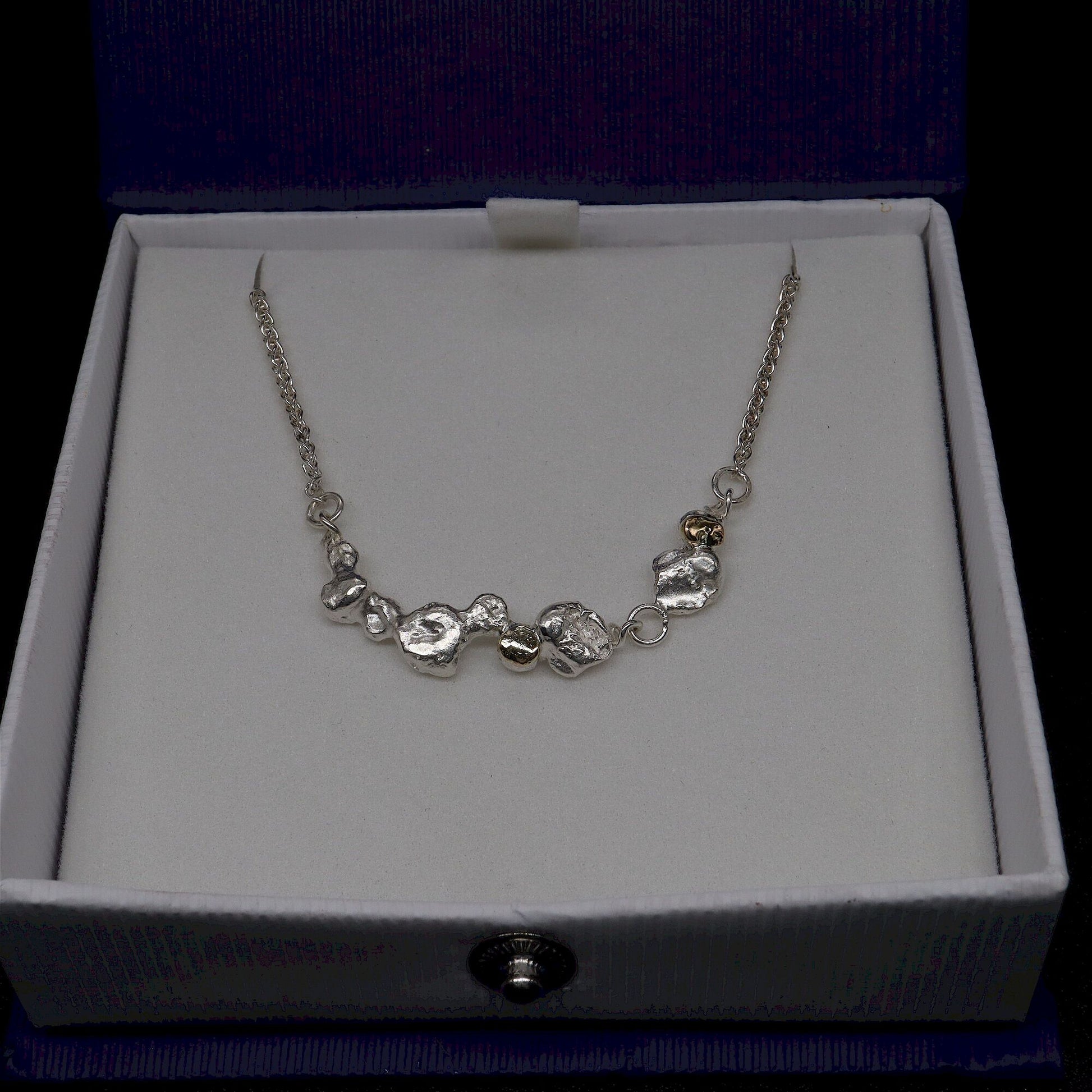 Silver and gold drop necklace - Stepping Stones handmade original jewellery design. Ref JF21