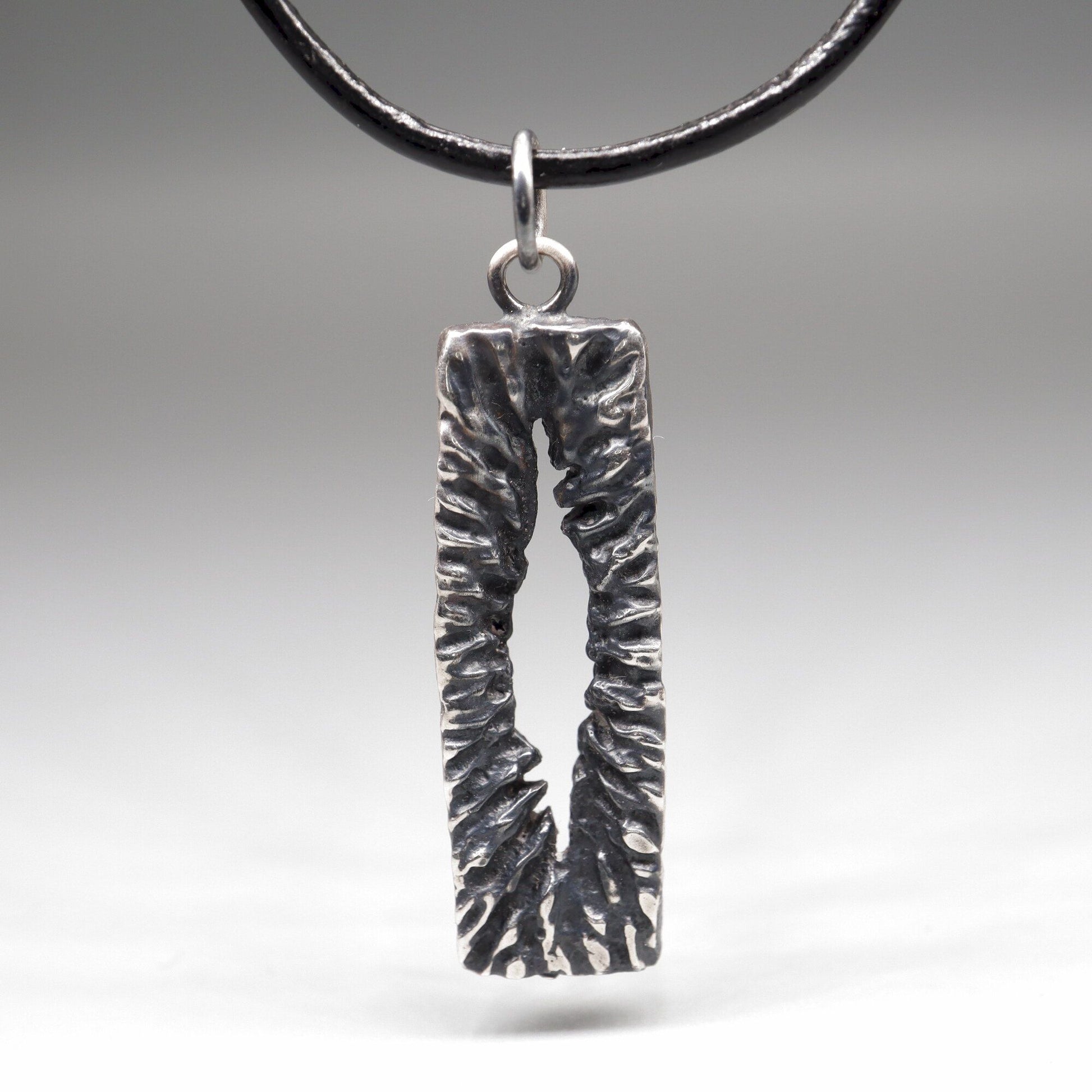 The Crack, one of my Lakeland Rock original mens pendant designs in darkened silver complete with an 18 inch black leather cord.