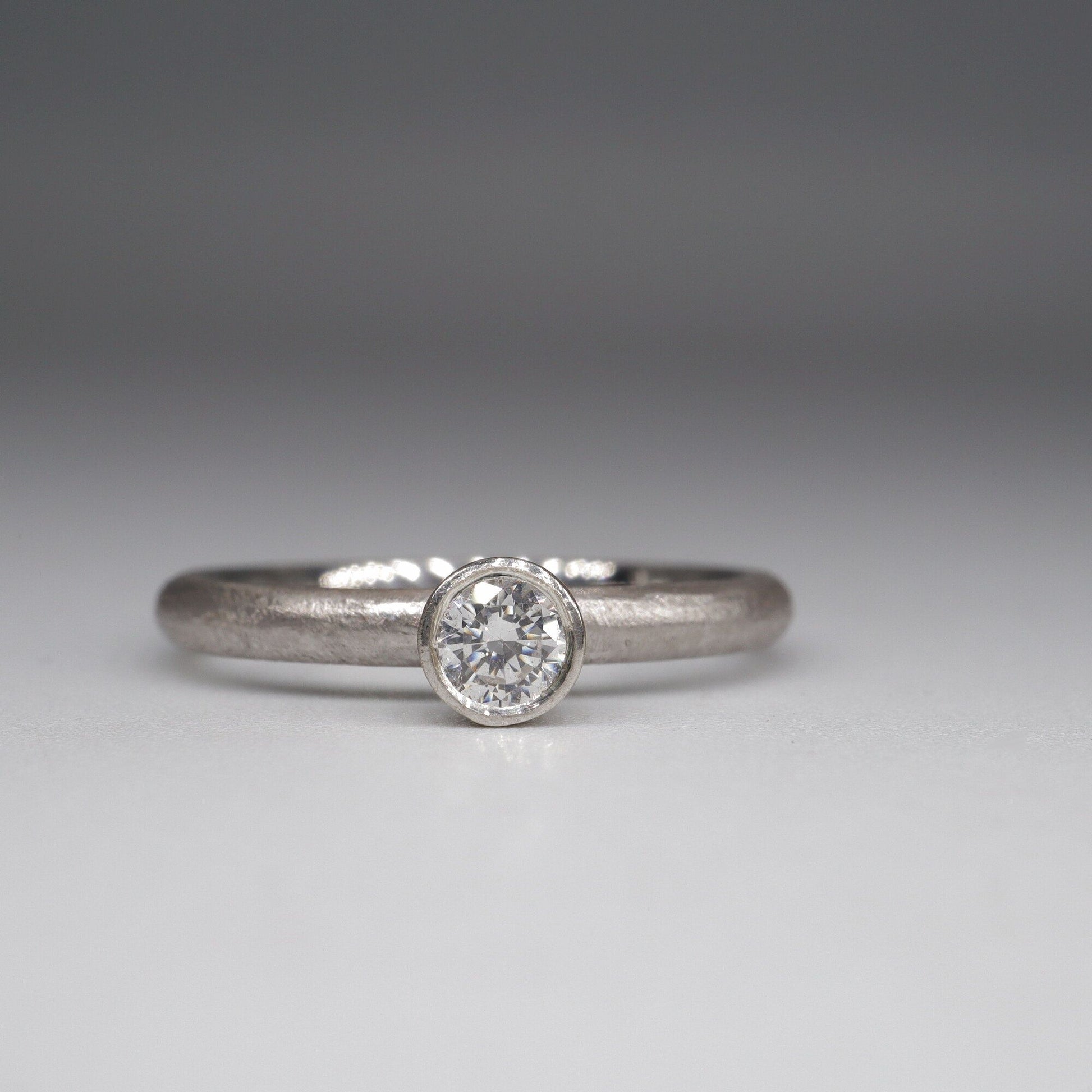 Solitaire larger diamond minimalist narrow ring. Mountain Raindrop design set with one natural 3.5mm diamond.