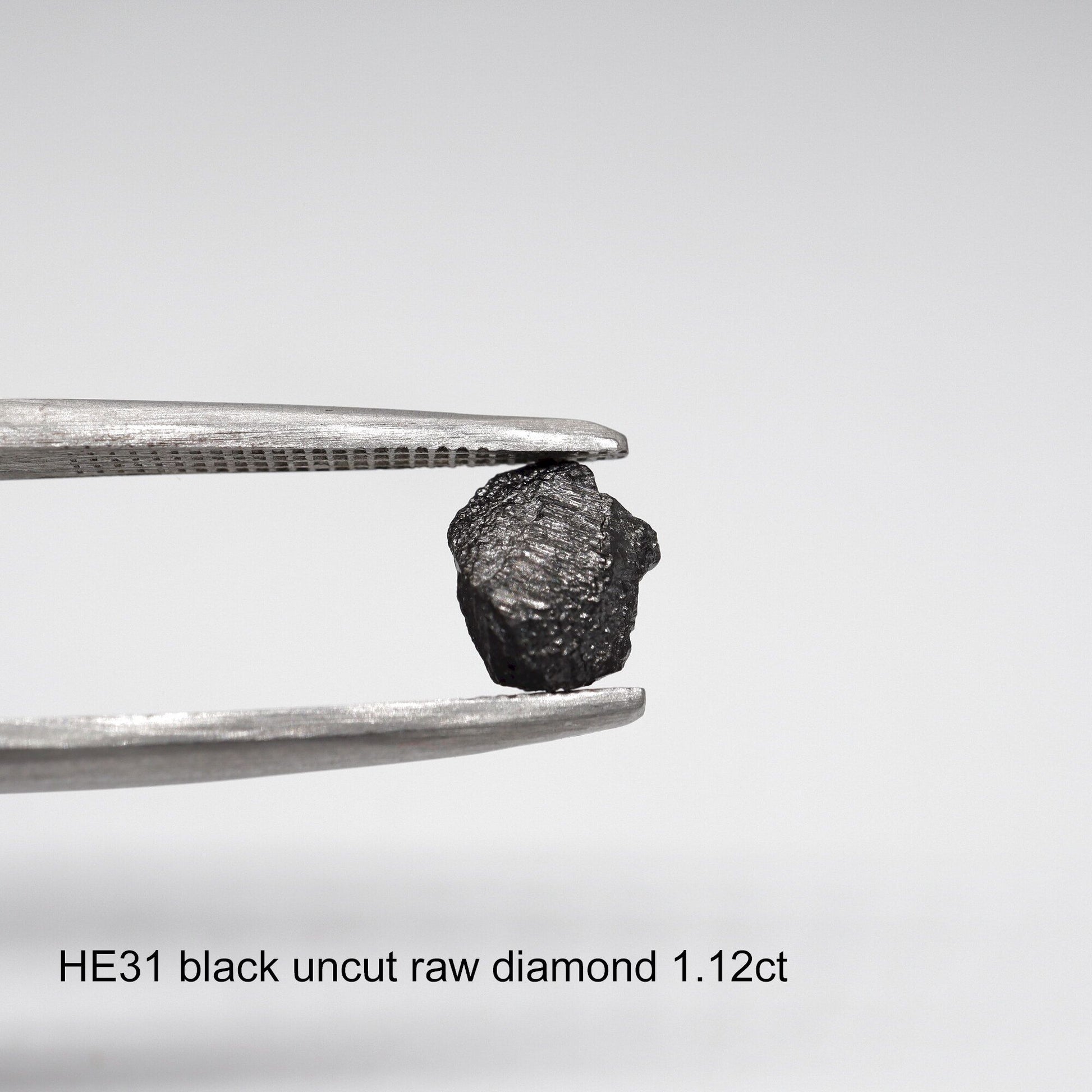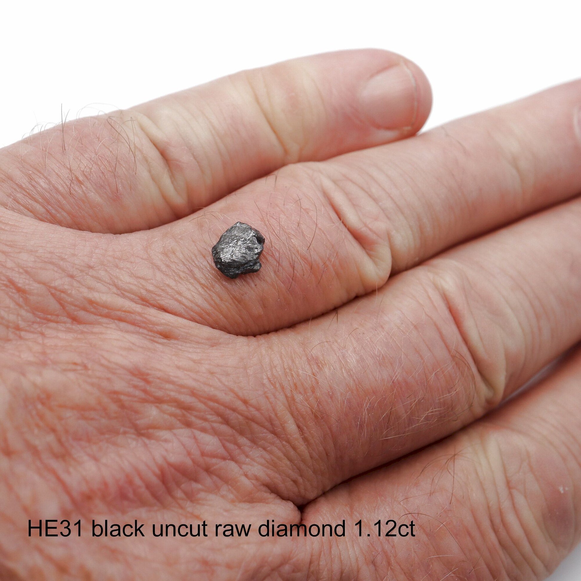 Uncut raw black diamond solitaire ring, 1.12ct. (HE31)