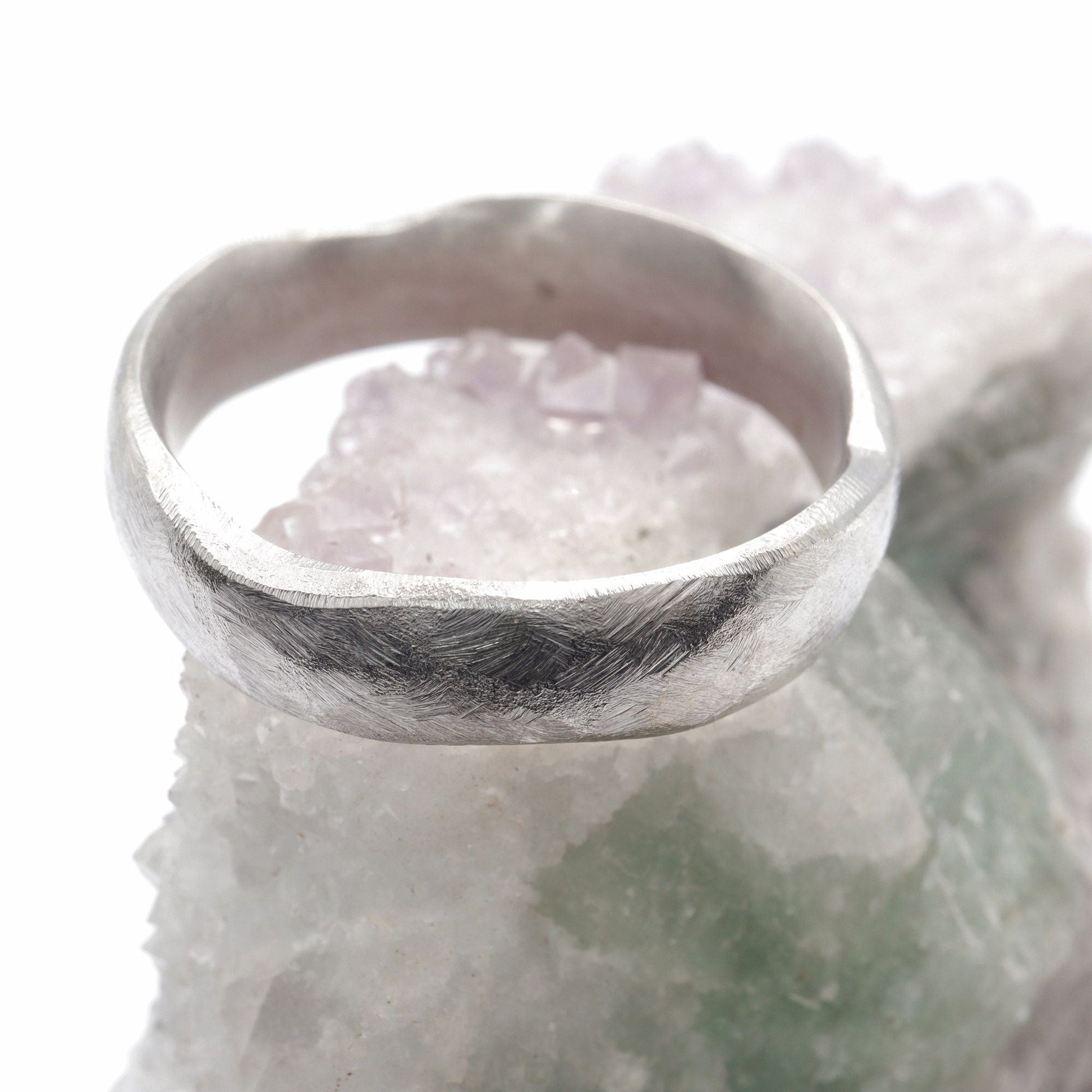 Wedding ring, broad silver Beach Sand design
