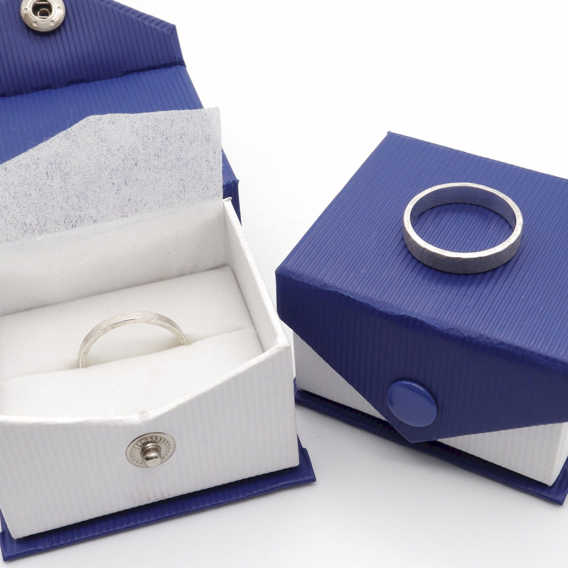 Each one is handmade creating a unique individual pattern on every ring so no two are exactly alike. Both the 2mm and 4mm rings are made on a heavy flat band.